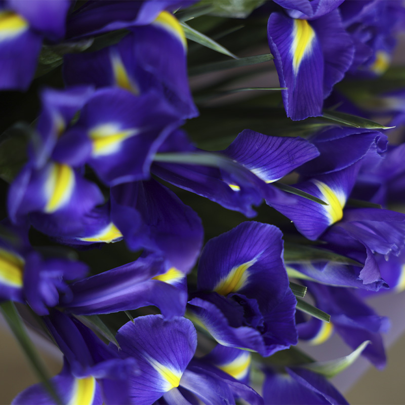Многообразие расцветок отражает многогранность значений цветка в букете. Синие ирисы являются символом мужества, храбрости. Цветок стимулирует на принятие важного решения, подчеркивает значимость момента. Синие ирисы с белой окантовкой гармонизируют пространство.