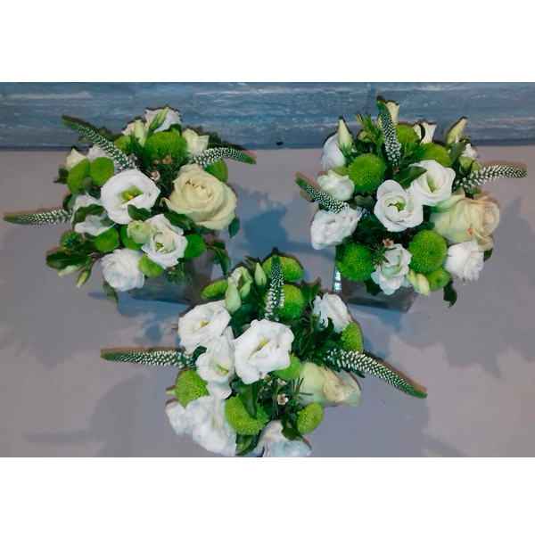Состав: эустома белая, роза белая, вероника, питоспорум , филингрин.